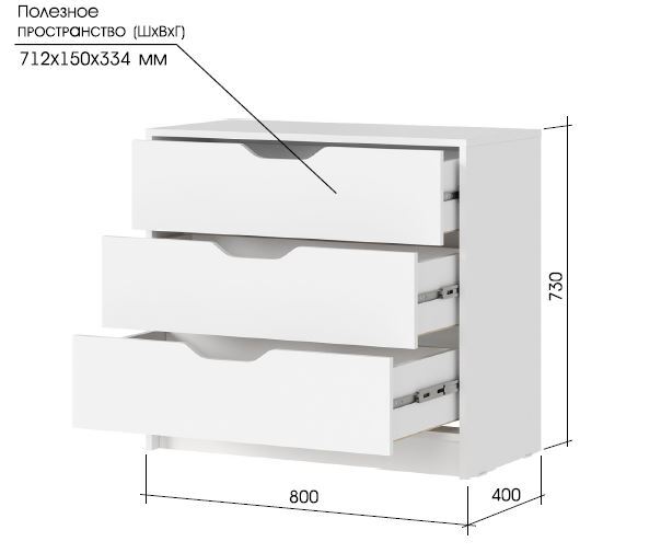 3 вместительных выдвижных ящика обеспечивают удобное хранение белья, одежды, аксессуаров и прочих мелочей.
